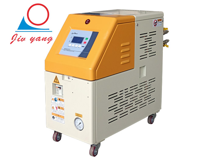 该款橙色电箱运水式模温机为邦普板的9KW工业水温机,采用了防爆电加热器,开机即可自动排气,加热功率可根据使用情况进行切换,工业水温机的突出优势在于体型小、加热快、传热效率高,使用清洁的水资源,环保无污染。