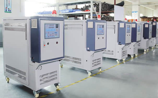 水温机运行原理和分类:久阳水温机是一系列以水为传热媒体、通过循环水泵将热水输送给需热设备,然后回到循环系统中再次加热并循环的温控设备,以控温范围分可以分为120度水温机(标准水温机)、150度水温机(高温水温机)、180度水温机(超高温水温机)。