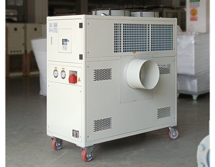 风冷式冷热一体机是能够提供冷却用冷冻水和加热用热水的智能控温设备,采用了微电脑控制器PID调节加热和冷却。当破碎机电机轴承的温度低于28℃时启动加热系统将轴承温度升高并稳定,让轴承温度高于30℃时启动制冷系统进行冷却降温并稳定,这样电机轴承的温度就能够稳定在设定温度区间内。