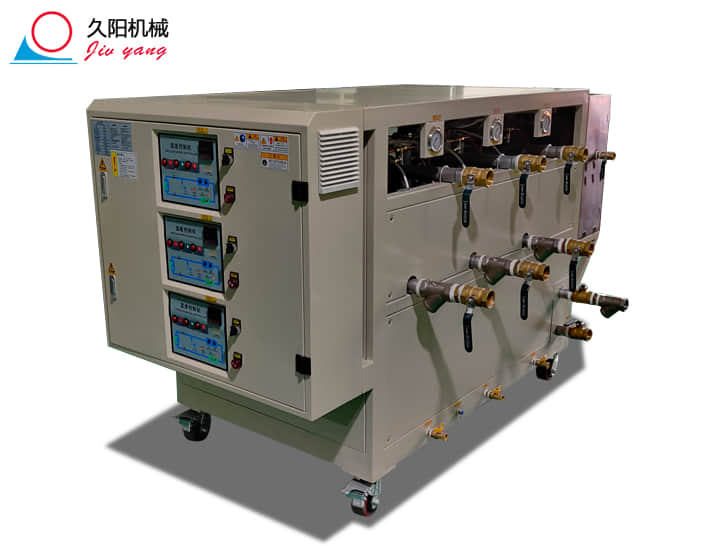 三温水温机是久阳模温机厂商常生产的设备之一,常用于注塑控温、流延膜加热、多辊挤出等多控温生产线;是根据水温机的特性进行非标定制的控温设备,以满足客户实际生产控温的需求,三机一体水温机常见温度有120度、150度、160度等。