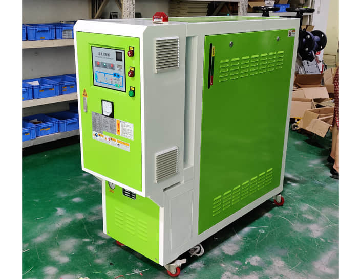 橡胶专用模温机:主要通过导热油作为导热介质对硫化机、密炼机、捏合机等主机进行精准控温,工作时温度可达300℃,可精准控温在±0.1℃;橡胶模温机是由油温机改动而成,继承了油式模温机的单片机面板控制器,相对来说操作简单、易于掌控、安全性能高;在高温油温机里面,久阳机械可以根据您的实际需求进行量身定做符合你的控温机器,而这台橡胶专用模温机便是如此。